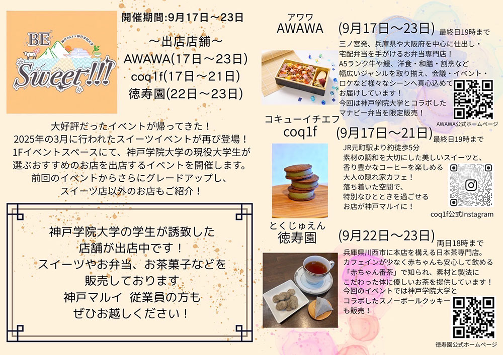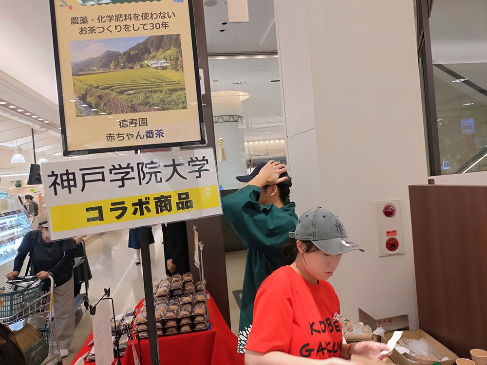 この阪急西宮でのマルシェのあとの9月22日(月)と23日(火)は神戸マルイにて、徳寿園のお茶とコラボ商品のクッキーを販売します。ここでも辻ゼミナールの学生が協働します。