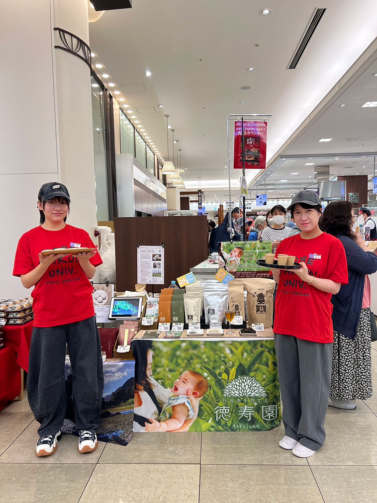 2025年9月20日(土)と21日(日)の2日間、阪急西宮1Fにてフードマルシェが開催されました。そこに徳寿園(本社:兵庫県丹波市)が出店することになり、辻ゼミとのコラボ商品の番茶クッキーも販売されることになりました。徳寿園は、無農薬天日干し赤ちゃん番茶、丹波在来品種の垣根茶、同じく丹波市在来品種の大路柳など豊富なお茶を扱っている会社です。