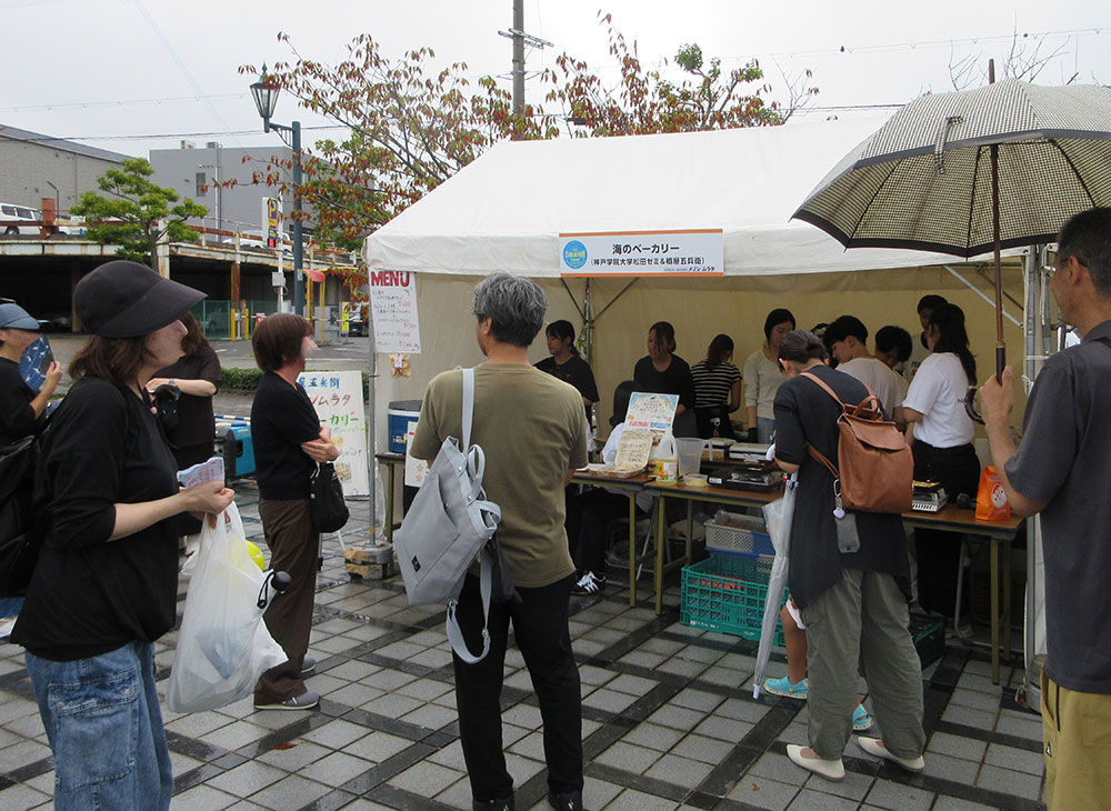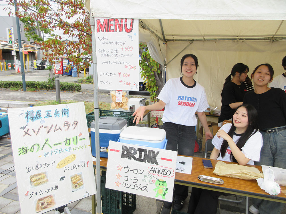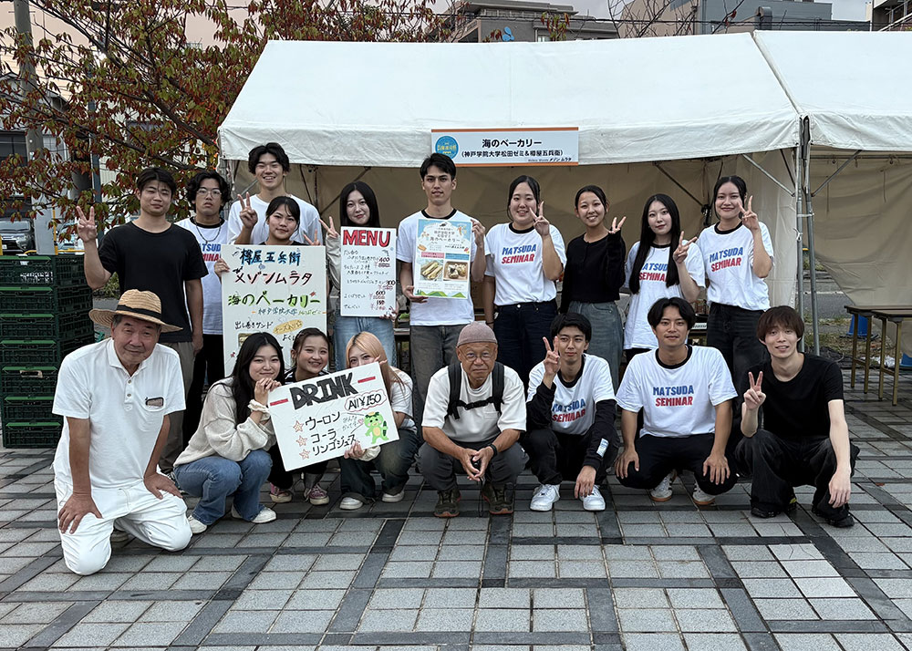 10月5日(日)開催の「2025兵庫運河祭」に松田ゼミナール3回生が参加しました。ゼミ生たちは樽屋五兵衛(協和商事株式会社)代表取締役社長高田誠司様、メゾンムラタのオーナーシェフ村田圭吾様の御指導のもと、兵庫津の海産物(レトロ)とみなと神戸のパン(モダン)をコラボさせた新感覚のメニュー開発に取り組んで参りました。