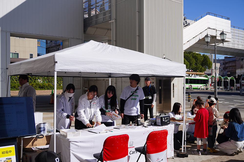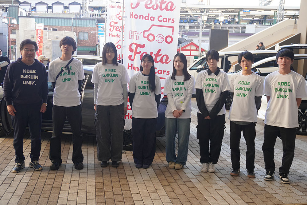 本学が参画する「一般社団法人 大学都市神戸 産官学プラットフォーム」の産官学連携プロジェクトを「株式会社ホンダモビリティ近畿」と共同で実施している経営学部の田中康介教授のゼミ生等(3年次生)が11月16日、「ホンダカーズ兵庫フェスタ」(御影クラッセ)に参加しました。