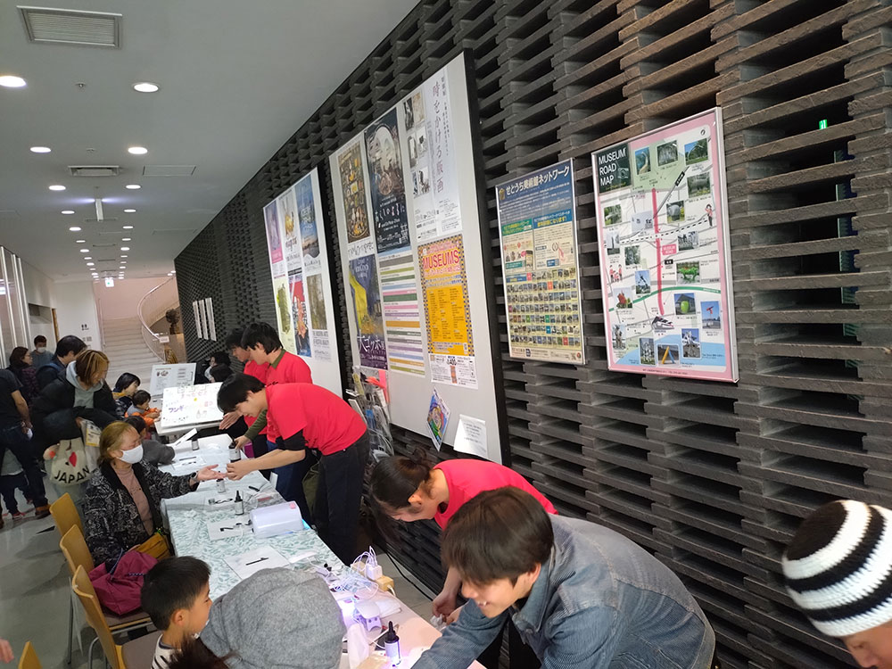 ワークショップの方は多くの子供たちが参加してくれました。全体で188人の参加がありました。昨年は途中で材料がなくなってしまったので、今年は少し多めに用意しましたが、ちょうどなくなるくらいの量でした。レンジを固めて、マグネットをつくるのですが、今年はレジンを固める器具を9台準備したため、昨年よりも行列が少なく、スムーズに回転しました。